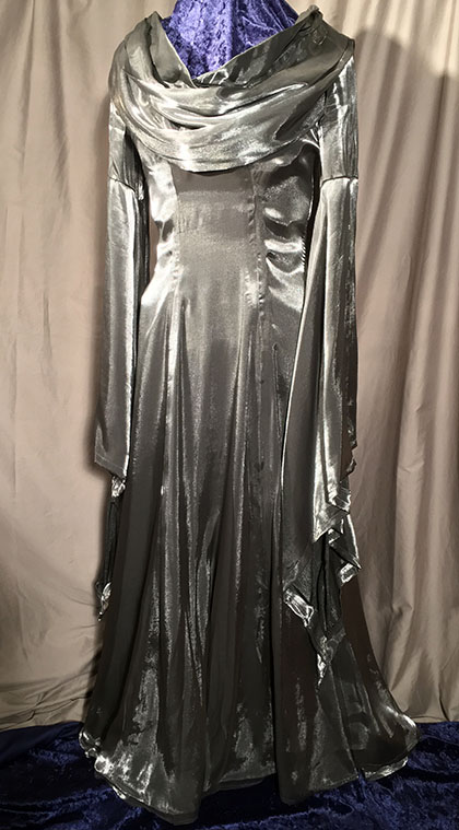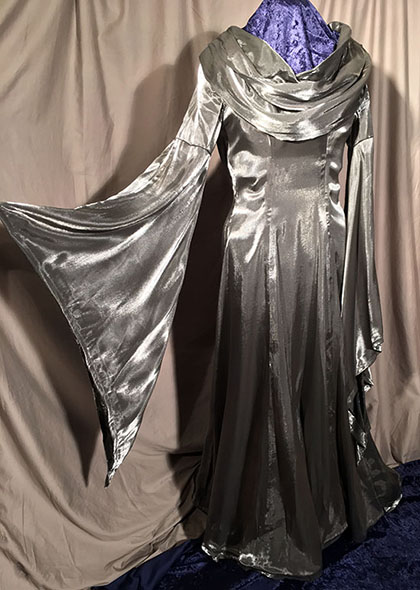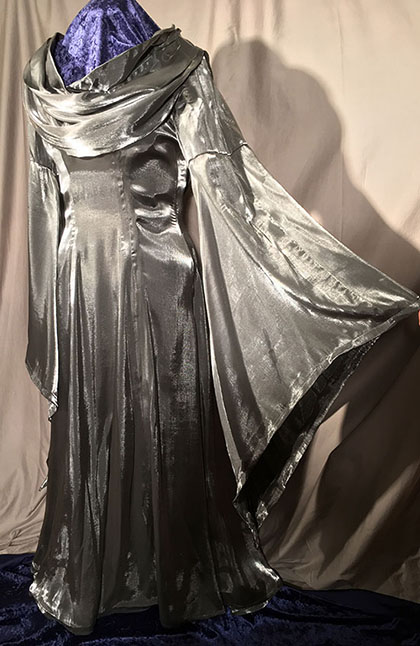 Different styles of fabrics, from intricate to difficult, were hand cut and sewn to give the illusion of Fancy Dress Elves, complete with custom battery pouches, which enclosed the battery packs for the crown lighting. Each cape and dress averaged 3 yards of fabric, one of which is fully lined. The Crowns were made to be easily adjusted for the perfect fit.